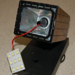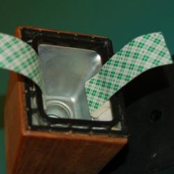 To install the LED assemblies in the older style IP Salon light fixtures I use 1" wide double sided tape. I fold the tape 4 times ending up with a layer of tape that is about 1/4" thick. Each LED will require 2 of these folded tape strips to hold it in place.
