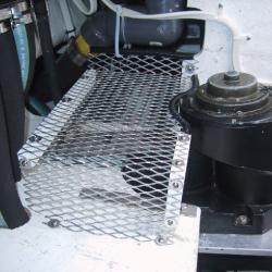 This installation required fabricating a sturdy aluminum shelf. After installation a stainless mesh guard was installed to prevent fouling be items stored in the lazarette.