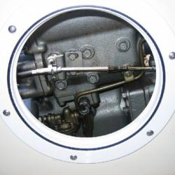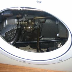 I took a few pics of the Quarter birth Engine Access hatch. I lost the installation pics but you get the idea. This makes checking and changing the oil a snap. The side panel is only plywood so it's easily cut.