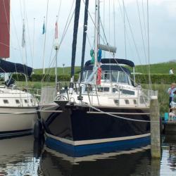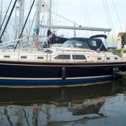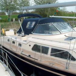 I took some pictures of the 485 next to me in the marina. It shows the specially developped windshield and a full enclosure.