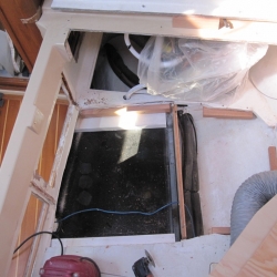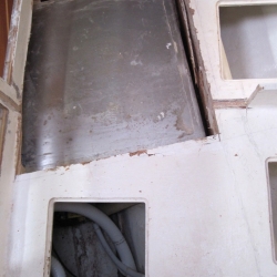 On our first over-nighter on our "new" boat in 2010 we discovered the holding tank was compromised. So much for marine surveys. We had the tank replaced at Gratitude in Maryland. First guesstimate for repair was "around $7500 and six weeks". We were living aboard at this time so this was critical for us. They went in through the bunk in the forward stateroom. The tank had to be cut apart in place to be removed. The replacement came from Wellington Tanks. 1/2" plastic with baffles and a level sensor. In the end the job took three months and cost $14,000. Probably would have been better to go in through the floor.