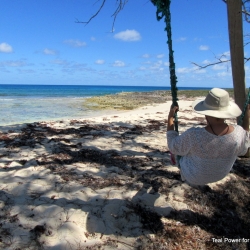 Cambridge Cay is in the center of the Exumas Land and Sea Park, and Radeen and I think this is the most beautiful place we have ever explored. You have 5 or 6 beaches, 3-4 coral reefs, 2 caves, and a big hill to hike as well. The park runs mooring balls in this area, but many cruisers come here to anchor during frontal passages when winds go Sw to W to NW. The holding is good, but the current runs fast. We take a mooring ball and are happy to support the Bahamas National Trust, it is only $20/night with 2 nights free for the $60 dollar membership to BNT. We join every year before sailing into the Bahamas. Here are some photos of the area as I continue to test out the IPYOA photo app and connectivity with very limited bandwidth...works fine!