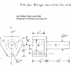 This shows a bronze adaptor I had made to attach a readily available 3/4" oval zinc to a H5 Autoprop. This replaces the standard Autoprop zincs which don't last long and are expensive.