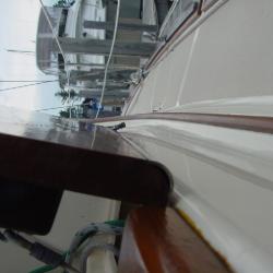Using a 1/2 inch cove router bit and a standard stainless steel rub rail to eliminate the chafe from the jib sheets.