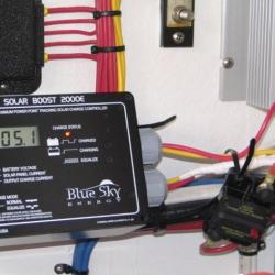 Two Kyocera 130 Watt Panels. Blue Sky Solar Boost 2000E Controller. Blue Seas Surface Mount Breaker.