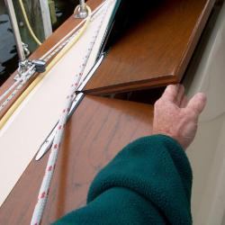Stainless strips to protect cockpit coaming from jib sheet chafe - port side only.