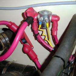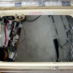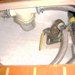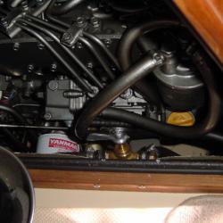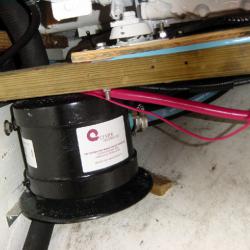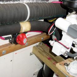 I installed the small Kubota DC genset (160 amp large case alternator) far enough aft in the port side lazarette that (at 6’4”, 220) I can still climb down in to service it. I really lost very little usable space. The use of the existing aft-cabin sink drain thru-hull as a raw water supply made things much easier as I ran the raw water hose up through the hanging locker and along the portside hull-deck joint. The 3-way fuel valve is easily accessed via the galley engine access door and made getting fuel to the genset much easier. I ran the fuel return line directly back to the fuel tank. I ran the fused genset alternator output back to the standard battery combiner solenoid which reduced the battery cable run. The start battery switch is just a safety precaution in the event that the starter switch jammed. The water-lift muffler has a long looped run well above the water line under the helm seat to avoid any chance of water being forced in from a following wave. The exhaust thru-hull is far aft in the port side lazarette. The output is controlled by a separate Balmar 612 regulator for a completely redundant charging system.