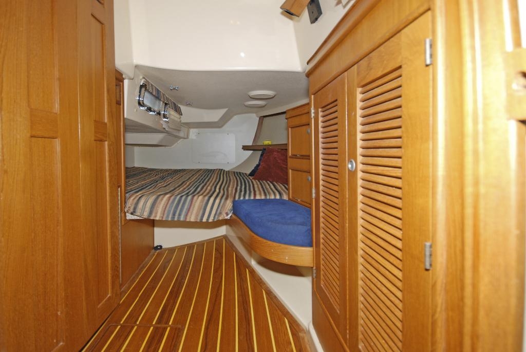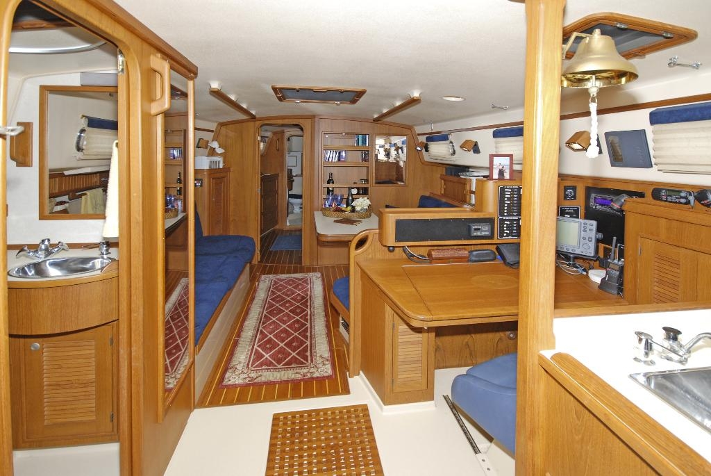 Built for extensive cruising and long-term live-aboard comfort, this Island Packet 45 has been designed to ABS offshore standards for safety and reliability. All sail control lines for the standard cutter rig are led aft to the cockpit, and the inherent easy motion and enhanced steering qualities of the long-keel hull form provide exceptional stability and superior seakindliness while protecting the propeller and rudder. The interior, with its two staterooms, two heads, large separate navigation station, and commodious storage areas makes for extremely comfortable and practical accommodations.