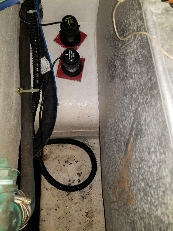 My question is where is the paddle wheel speed transducer mounted on other IP boats (any model), and typically how far from the centerline of the boat / how far from the side of the keel? This device is usually not installed by the factory and various locations may be used.. As shown in the photograph, the transducer on our 380, Indigo, is currently located in the starboard bilge just forward of the fuel tank, and about 16 inches from the centerline of the boat. The second transducer in the photograph, further outboard, is the depth transducer.