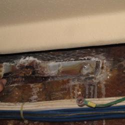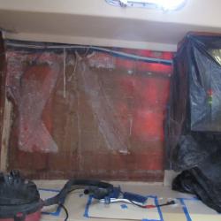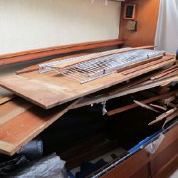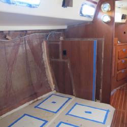 How did they look? Most had surface rust, one looked scary. They all trapped water in the glass mat that covered the “T” bar. We left that off on reassembly. The port side stern chainplate came out looking almost new! NONE OF THE 21YR OLD CHAINPLATES SUFFERED THE CREVACE CORROSSION that has doomed some masts in the past. None. It would have been much more rewarding if we had found a crack or two but a couple minutes with a wire brush cleaned them right up and showed no obvious damage or danger. Still, we’ll sleep better and be more confident in the coming years passages knowing that the rig is secure. Also, at 21yrs just because you can’t see the damage doesn’t mean it isn’t there.