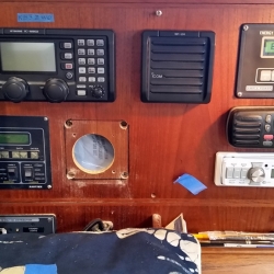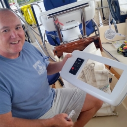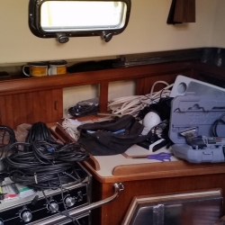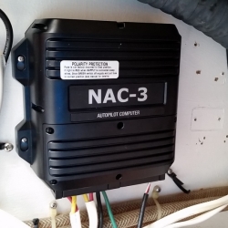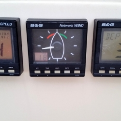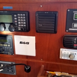 We decided to upgrade our B&G network gear, which was 1994 version and we decided to also upgrade our B&G network ACP-1 autopilot to the new digital NMEA 2000 NAC autopilot by B&G. We removed all our old gear and all old wires and installed a NMEA 2000 backbone and new gear. We added 2 Triton2, Wind, Speed, Depth, Temp, NAC pilot, Rudder Reference, Compass9 and GPS. All connected to a new NMEA 2000 backbone. We bought all our gear from Colin Mack at www.MackSails.com who was fantastic to work with. Radeen and I installed all the gear while on a mooring ball in Stuart Florida at Sunset Bay Marina. Here are the photos.