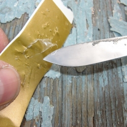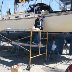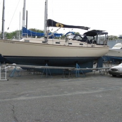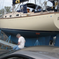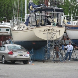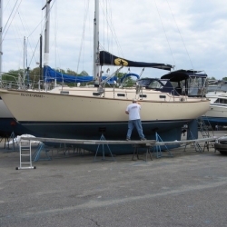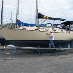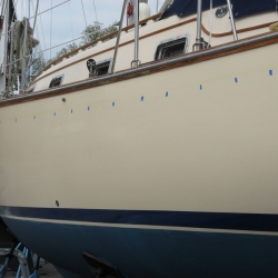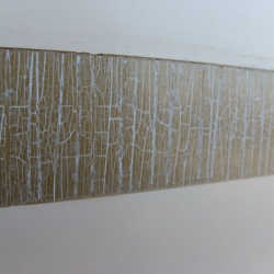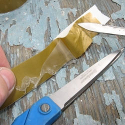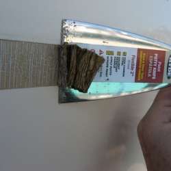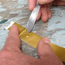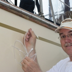 We removed the gold stripe on our 1994 IP35-165 back in 2007. These photos show the process and also show the CLEAR FILM layer that is on top of the stripe. This is hard to see and if left on, this will crack and craze due to UV. If your gold stripe is cracked and crazed, it more than likely had this thin film left on after installation.